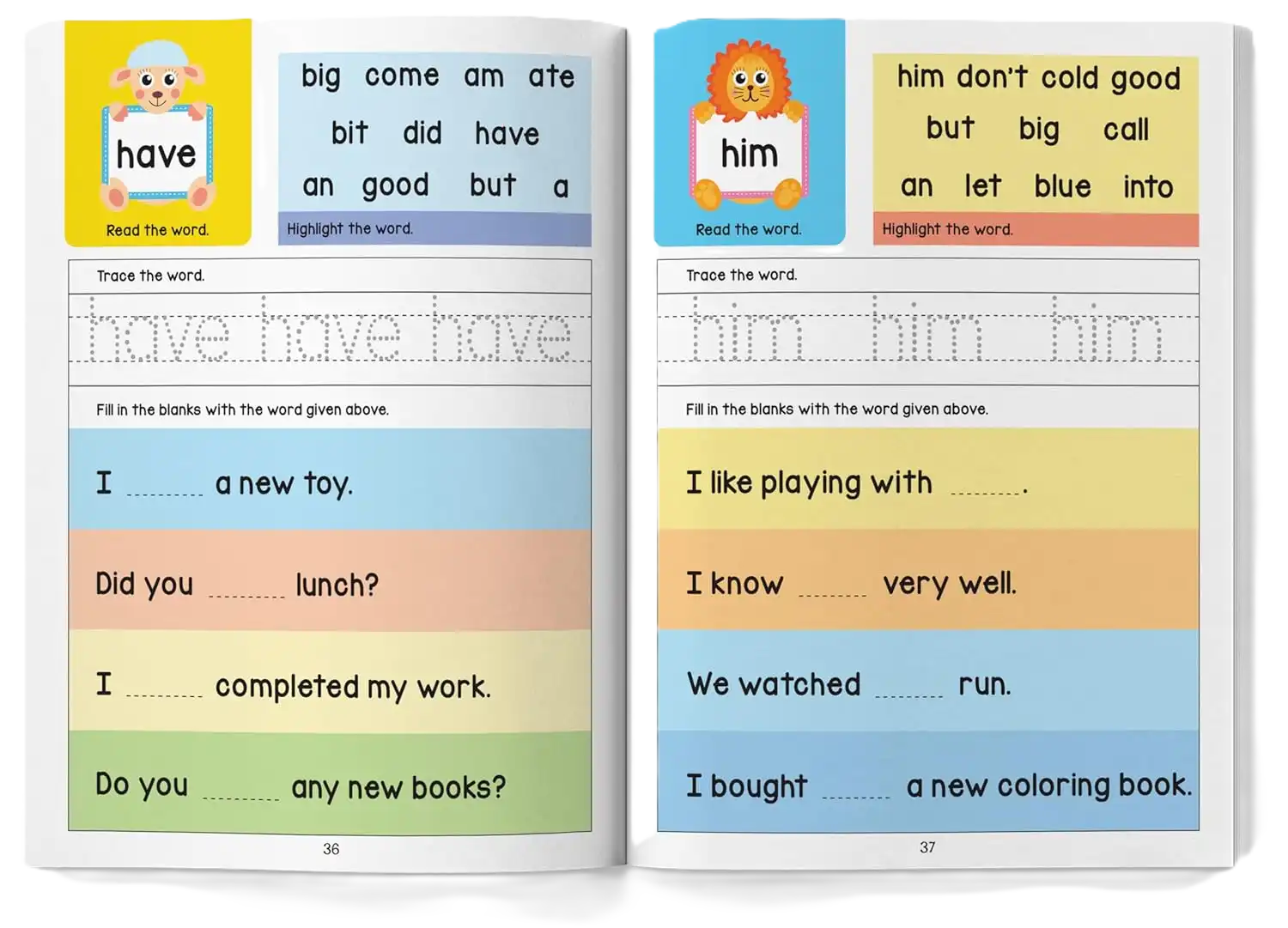 101 Sight Words and Sentences is an engaging book for young learners. It introduces children to 101 most frequently used sight words. Their usage and meanings are also explored in easy and engaging sentences to enhance the understanding of each sight word. This book also inculcates early reading proficiency and concepts in children while refining their pencil control and motor skills.