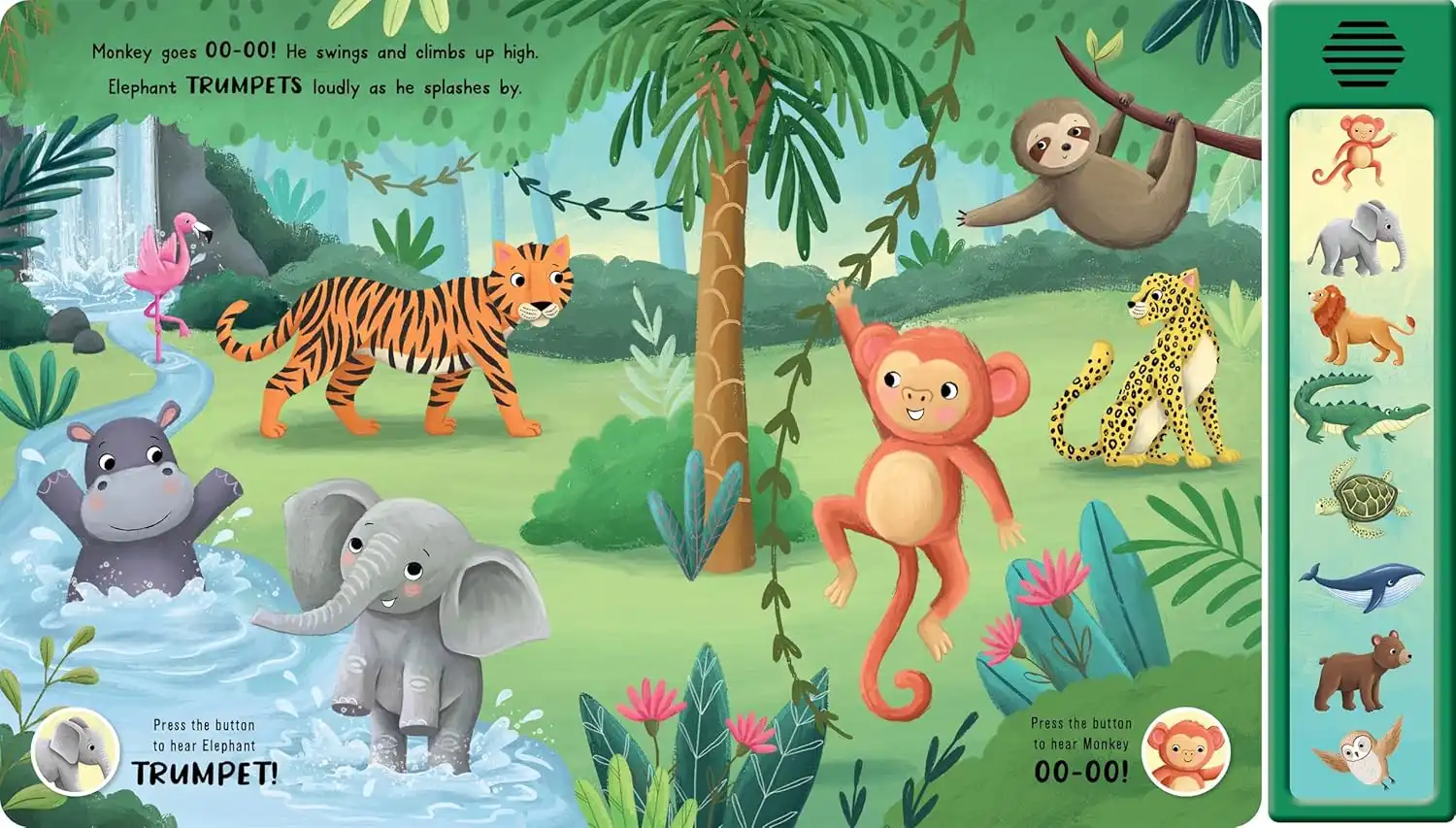 Join these noisy animals in the jungle, ocean, forest and savannah for lots of fun! With 8 sounds to enjoy, you can hear Lion ROAR, Monkey OO-OO and much more! – Interactive fun to keep children engaged – Teaches children about animals and the sounds of nature – With 8 different sound buttons