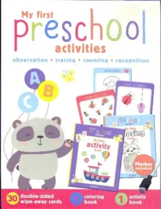 A fantastic pack filled with fun and educational activities that reinforces preschool level skills such as: letters, numbers, colors, shapes, opposites, basic math and more! This fully illustrated pack contains : two 24-page activity books, 30 double-sided wipe-clean cards with 60 activities and a wipe-clean pen that will allow children to start over if they make a mistake or just want to redo a fun activity over and over again.